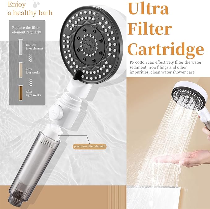 Éliminent les impuretés et le chlore pour protéger votre peau et vos cheveux. Un filtre est déjà installé et un filtre de rechange est fourni.
